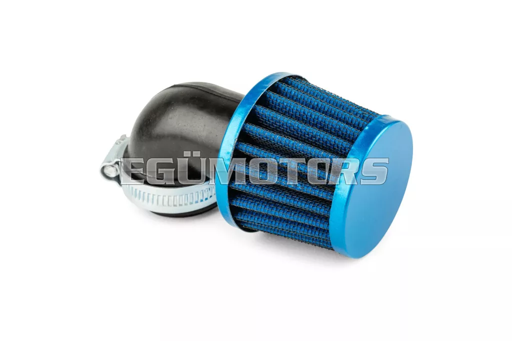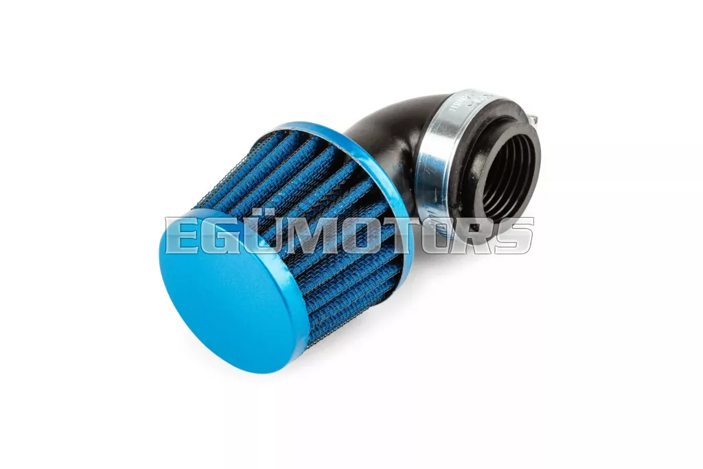 KN típusú kúpos légszűrő, 90°-os kivitel, 28-35 mm, krómozott. Nyitott tuning légszűrő.