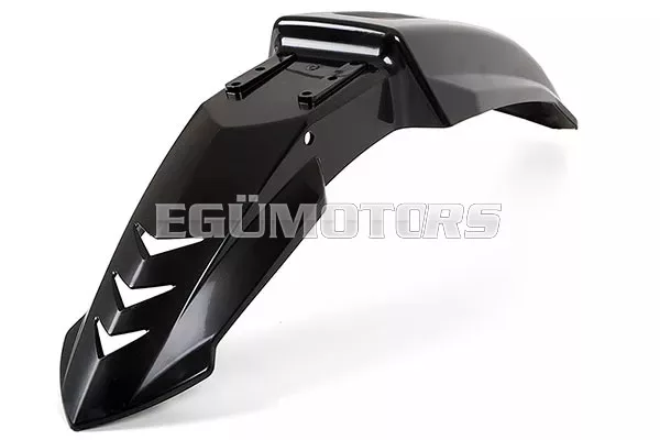 A fekete esztétikai szempontból sokkal jobban mutat, mint a gyári sárvédő. A supermoto motorok (motocross / enduro alapokon) 17 vagy 16.5 colos kerekeket használnak, míg az eredeti sárvédőt 21 colos kerékhez tervezték, ezért az arányaiban túl nagy a kisebb, közúti gumival szerelt kerékhez. Erre nyújt megoldást a kisebb, sportosabb megjelenésű supermoto sárvédő.