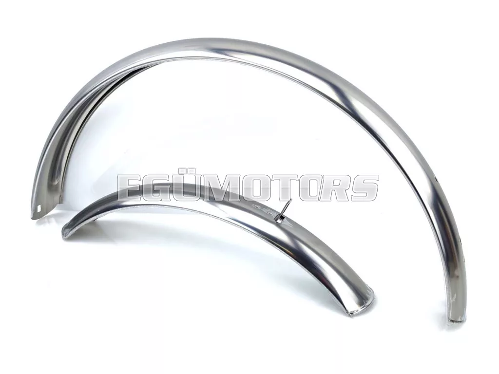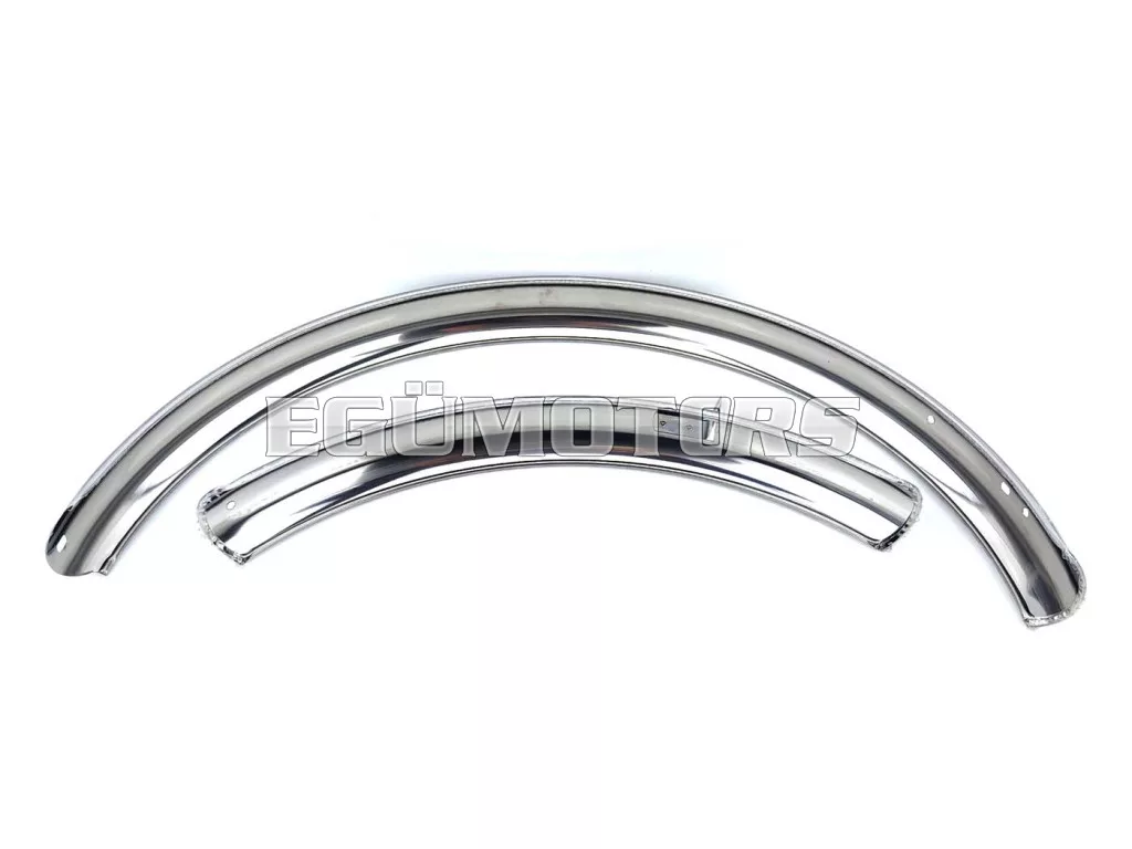 Fém, krómozott sárvédő készlet, univerzálisan alkalmas az 50-es évek számos mopedjéhez, 1.75 vagy 2x19 colos kerekekkel.
