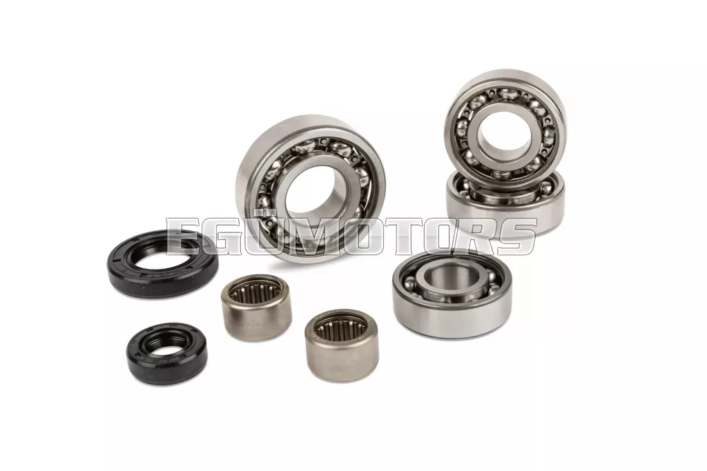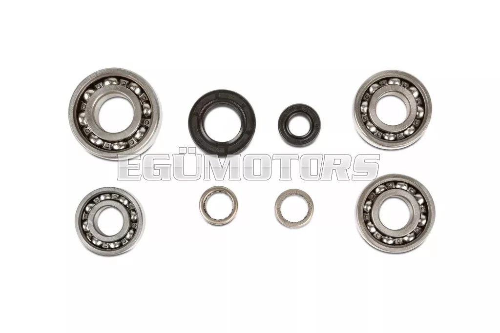 Ez a hajtómű csapágykészlet lehetővé teszi a Minarelli AM6 váltó összes csapágyának és szimeringjének cseréjét. Figyelem: a főtengely csapágyai és szimeringjei nincsenek benne!