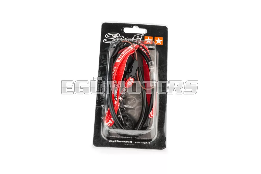 Minden szükséges kábel mellékelve van a kapcsoló csatlakoztatásához mind gyári, mind belsőrotoros gyújtásokhoz. A 60 cm-es barna kábel a testeléshez (M6), a fekete kábel a gyújtásjelhez (anya csatlakozó).