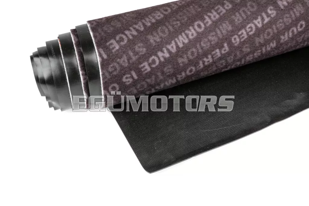 A Stage6 MK2 motoros szőnyeg megfelel a Nemzetközi Motorkerékpár Szövetség (FIM - Fédération Internationale de Motocyclisme) által meghatározott minimum méretnek: 200x100 cm. Kiváló minőségű, 100% poliészter felületű, alul olaj-, üzemanyag- és vegyszerálló fekete PVC hátoldallal.