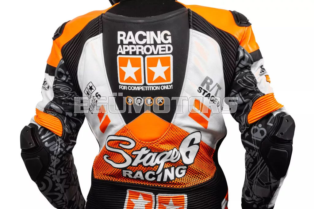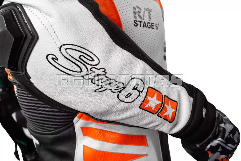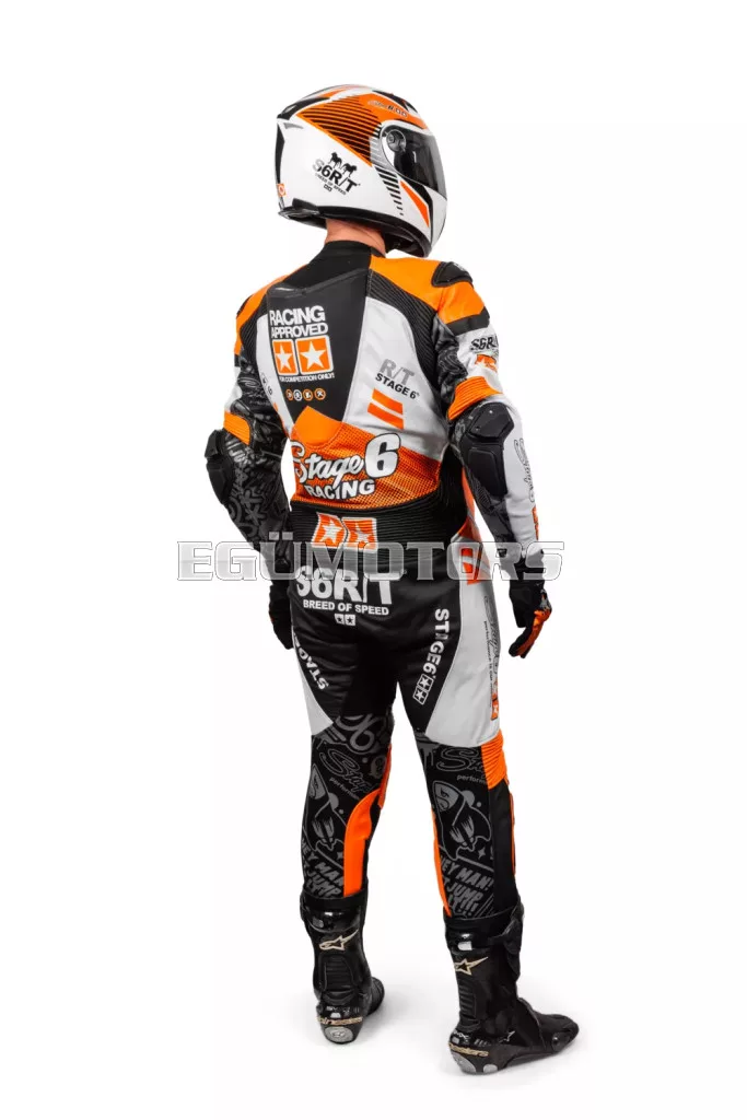 A Stage6 bőrruha új kiadása, MK3 verzióban. Az egyrészes motoros ruha CE minősítésű protektorokkal van felszerelve a vállaknál, könyököknél, csípőnél és térdeknél. Az elődhöz hasonlóan az MK3 változat különböző Stage6, Stage6 R/T és egyéb logókkal és felvarrókkal rendelkezik a karokon, a mellkason és a háton - a verseny megjelenés garantált!