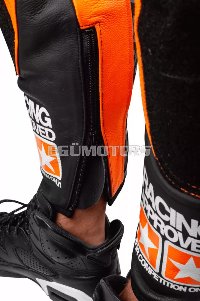A bőrruha emellett PU párnázással és dupla bőrréteggel rendelkezik a könyököknél és a térdeknél az igénybevett ízületek optimális védelme érdekében. A CE minősítésű hátprotektor már be van építve, így nincs szükség külön, kényelmetlen protektor viselésére a ruha alatt.