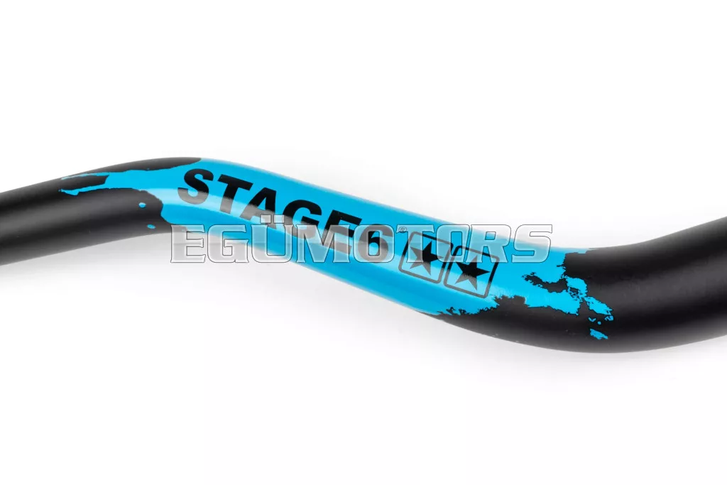 A kormány kiváló minőségű 6061-es alumíniumötvözetből készült, rendkívül könnyű és magas korrózióállóságú. Prémium fekete szatén bevonattal rendelkezik, amely esztétikus és tartós felületet biztosít. Újdonság a karakteres Stage6 arculat: két hangsúlyos Stage6 matrica bal és jobb oldalon, stílusos és jól felismerhető megjelenéssel. A matricákat átlátszó lakkréteg védi a korai leválás ellen.