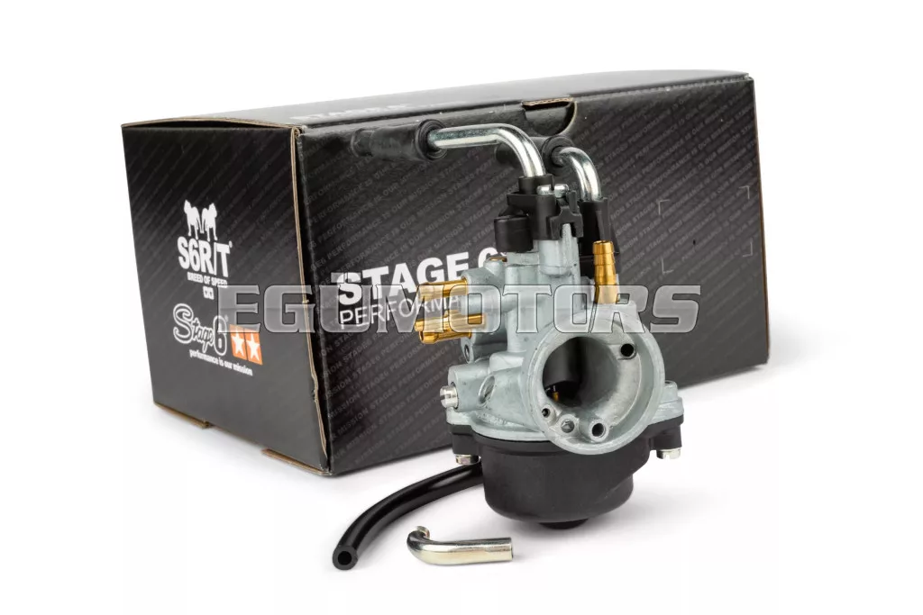 PHBN karburátor: Ez egy 17.5 mm-es PHBN Dell’Orto karburátor Stage6-tól. A 17.5 mm-es, kézi szívatós karburátor tökéletesen illeszkedik Minarelli motorokhoz (például Yamaha Aerox, Yamaha Jog vagy Malaguti F12), de más robogókhoz, motorkerékpárokhoz és mopedekhez is használható.