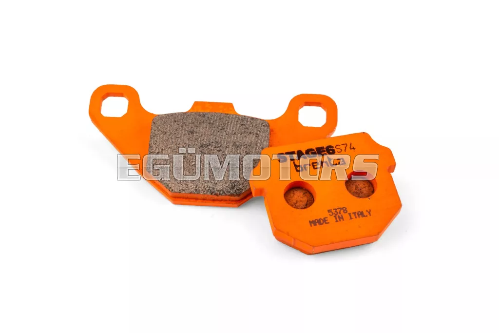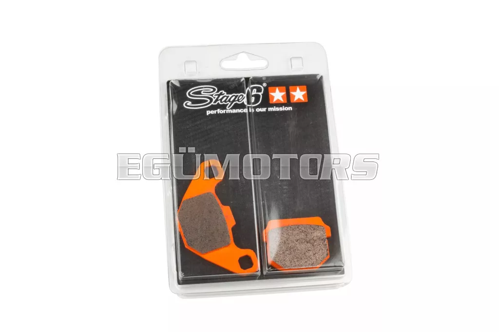 A Stage6 RACING fékbetétek a megfelelő választás mindazok számára, akik szeretik a gyors és „vad” stílust, de nem akarnak lemondani a biztonságról és a kiváló fékerőről. Minél erősebb a motor, annál fontosabb a minőségi fékbetét használata. Ezek a szinterezett fém fékbetétek kiváló fékteljesítményt és azonnali reakciót (harapást) biztosítanak, lehetővé téve a gyors és erőteljes fékezést még kedvezőtlen körülmények között is (pl. nedves vagy sáros pálya stb.). Az erős és sokoldalú fékbetétek már az első pillanattól kezdve érezhetően jobb fékteljesítményt nyújtanak.