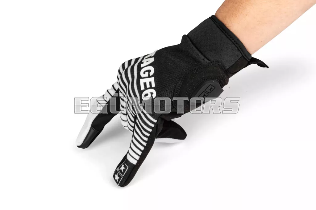 A Stage6 Pure kollekció letisztult, modern versenydizájnt képvisel. Felesleges elemek nélkül, tiszta verseny stílus. Külön kiemelendő a 3D-s Stage6 logó a hagyományos nyomat helyett. A kesztyű többféle színben elérhető, és a Stage6 azonos színű markolatokat és markolatvédő gyűrűket is kínál hozzá.