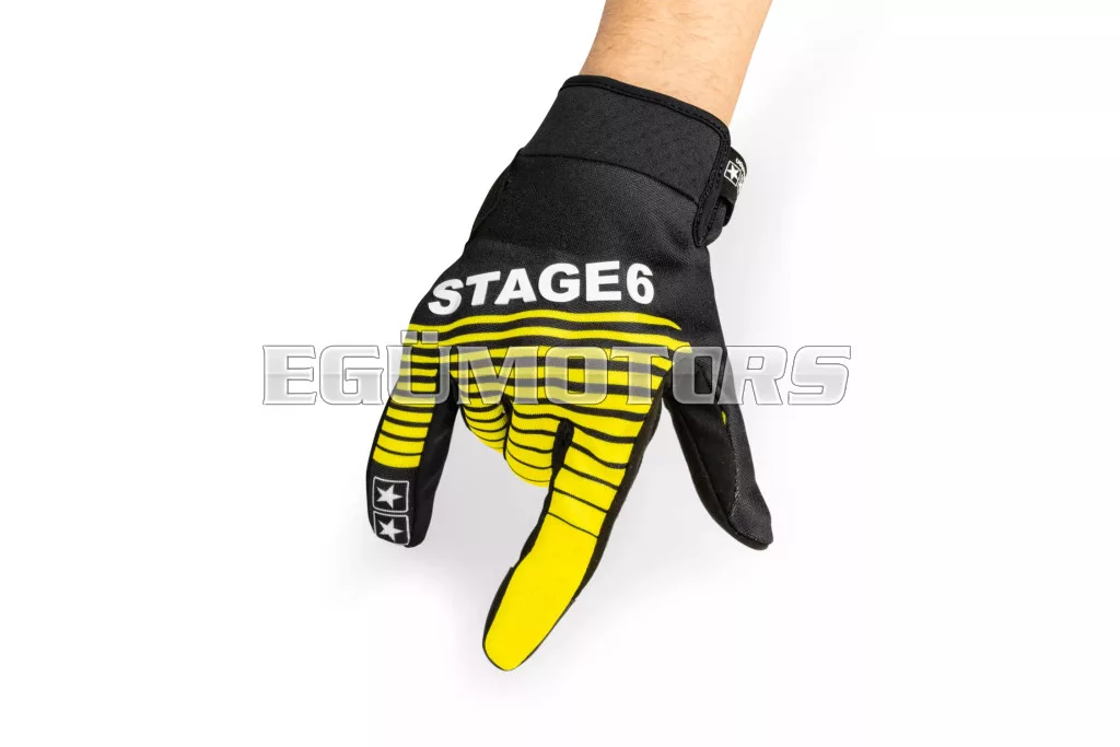 A Stage6 Pure kollekció letisztult, modern versenydizájnt képvisel. Felesleges elemek nélkül, tiszta verseny stílus. Külön kiemelendő a 3D-s Stage6 logó a hagyományos nyomat helyett. A kesztyű többféle színben elérhető, és a Stage6 azonos színű markolatokat és markolatvédő gyűrűket is kínál hozzá.