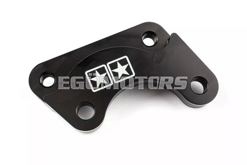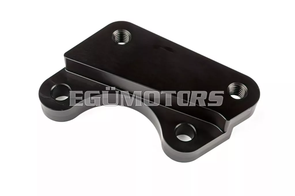 A fekete színű adapter teljes egészében CNC megmunkálással készül, és úgy lett tervezve, hogy az eredeti első féknyereggel használható legyen.