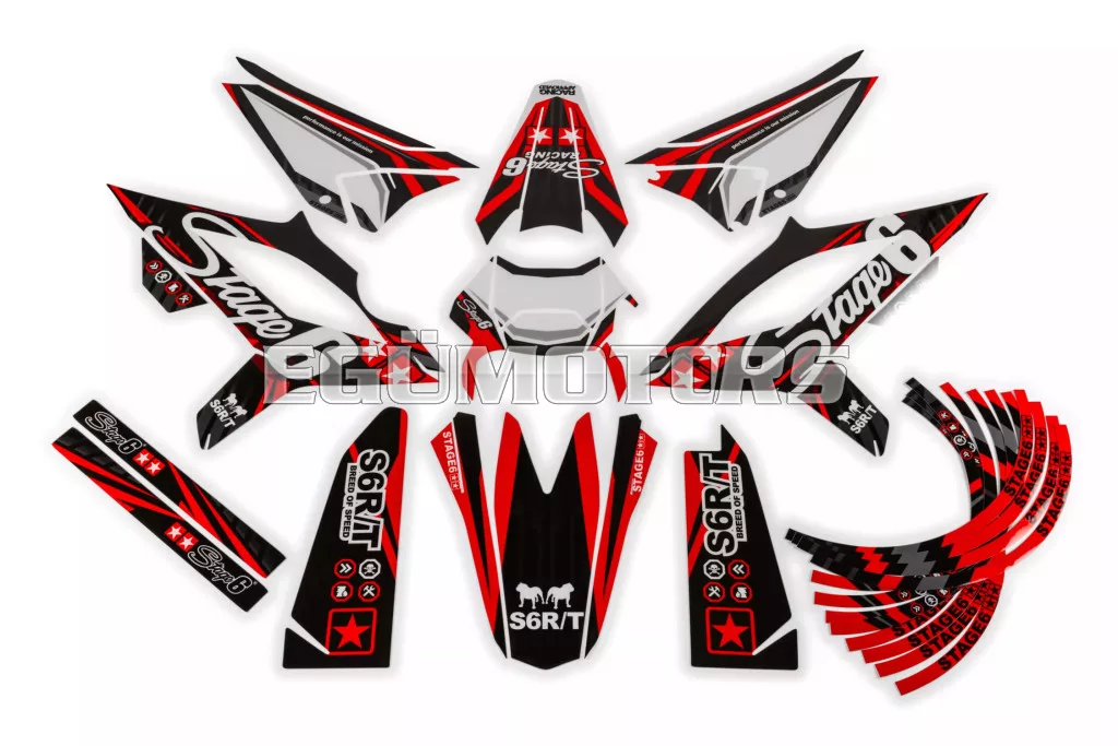 Frissítsd fel 50cc-es motorod megjelenését egy Stage6 grafikai készlettel: modern, vagány és 100%-ban Stage6 stílus.
