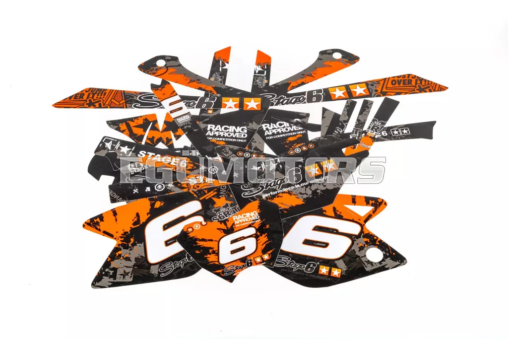 Frissítsd fel 50cc-es motorod megjelenését egy Stage6 grafikai készlettel: modern, vagány és 100%-ban Stage6 stílus.