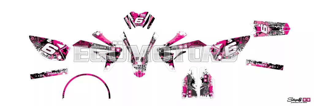 Frissítsd fel 50cc-es motorod megjelenését egy Stage6 grafikai készlettel: modern, vagány és 100%-ban Stage6 stílus.
