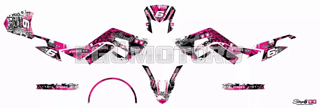 Frissítsd fel 50cc-es motorod megjelenését egy Stage6 grafikai készlettel: modern, vagány és 100%-ban Stage6 stílus.