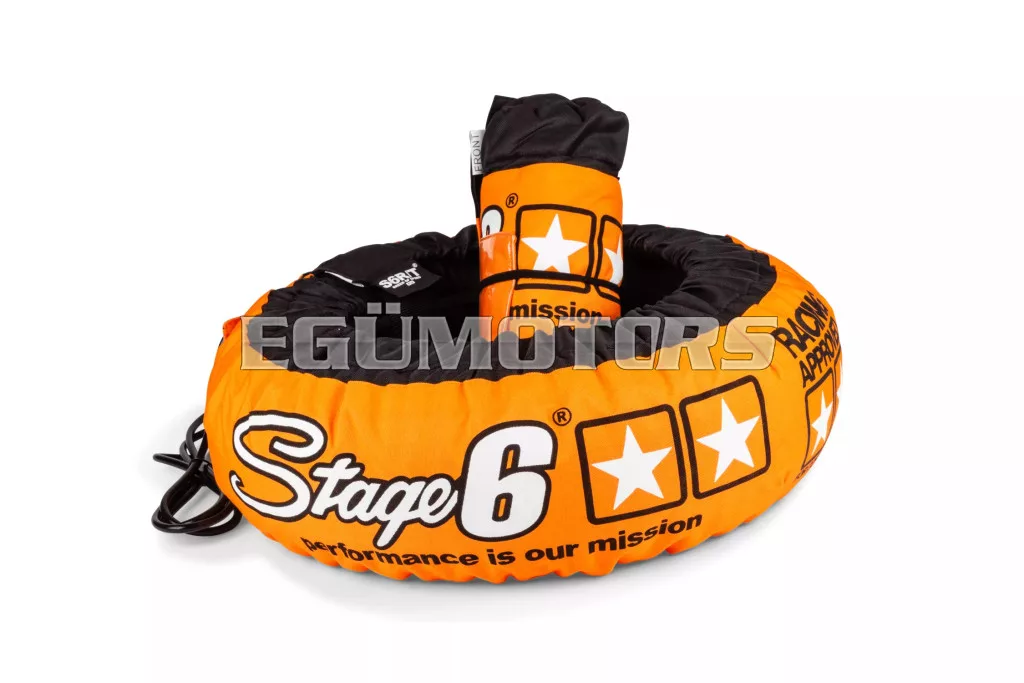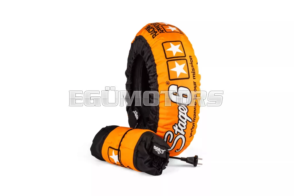 A Stage6 Race Tire Warmer egy prémium minőségű verseny gumi melegítő, amelyet kifejezetten azoknak terveztek, akik az első métertől maximális tapadást akarnak a pályán. Jellegzetes Stage6 narancs–fekete színvilág, stílusos logók és profi műszaki megoldások – ahogy egy igazi versenycuccnál elvárható.