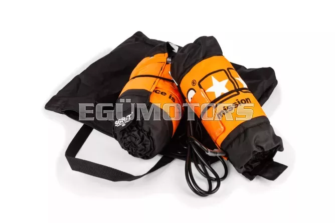 A Stage6 Race Tire Warmer egy prémium minőségű verseny gumi melegítő, amelyet kifejezetten azoknak terveztek, akik az első métertől maximális tapadást akarnak a pályán. Jellegzetes Stage6 narancs–fekete színvilág, stílusos logók és profi műszaki megoldások – ahogy egy igazi versenycuccnál elvárható.
