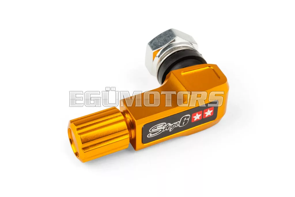 A Stage6 90°-os gumiszelep nemcsak esztétikai fejlesztés a precízen CNC-megmunkált testnek és az eloxált felületnek köszönhetően, hanem rendkívül praktikus is. A döntött kialakítás megkönnyíti a felfújást, különösen szűk helyű felnik esetén.