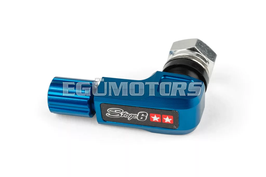 A Stage6 90°-os gumiszelep nemcsak esztétikai fejlesztés a precízen CNC-megmunkált testnek és az eloxált felületnek köszönhetően, hanem rendkívül praktikus is. A döntött kialakítás megkönnyíti a felfújást, különösen szűk helyű felnik esetén.