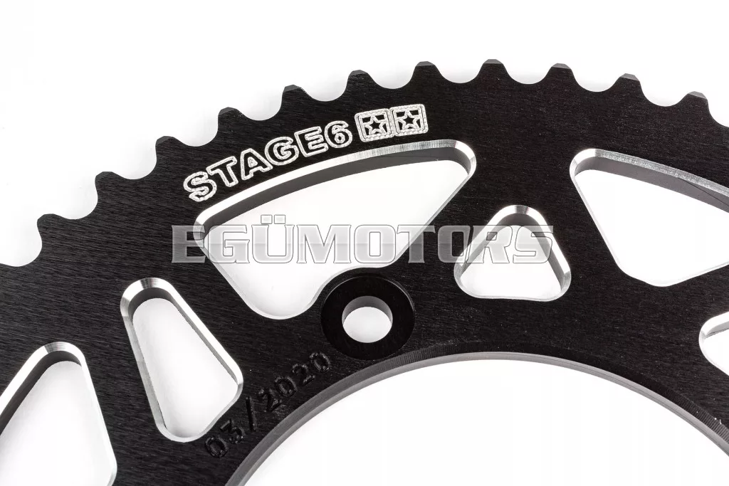 A lánckerekek fejlesztése során a Stage6 nagy hangsúlyt fektetett a hosszú élettartamra, a látványos egyedi megjelenésre, valamint a hatékony erőátvitelre. Az alumínium kivitelnek köszönhetően ezek a lánckerekek körülbelül 40%-kal könnyebbek a hasonló acél változatoknál. Ez jelentősen csökkenti a hátsó hajtás és a tengely terhelését, ami különösen versenykörülmények között jelenthet komoly előnyt. Emellett a CNC megmunkálású alumínium lánckerekek fogazása pontosabb a hagyományos acél lánckerekekhez képest.