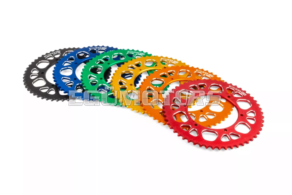 A rendkívül robusztus, lánchajtásos mopedekhez készült lánckerekek kiváló minőségű alumíniumból CNC megmunkálással készülnek, majd eloxált felületkezelést kapnak. Európában gyártják.