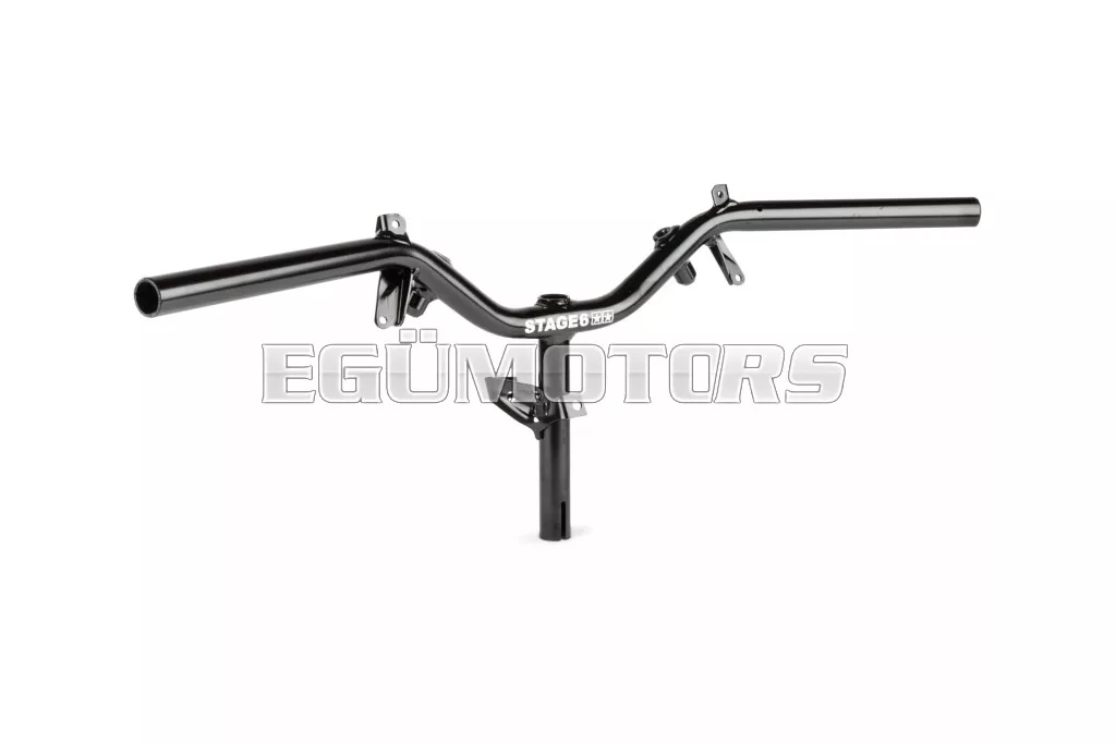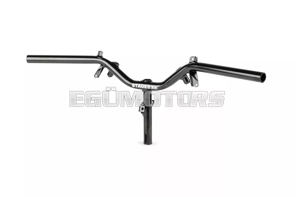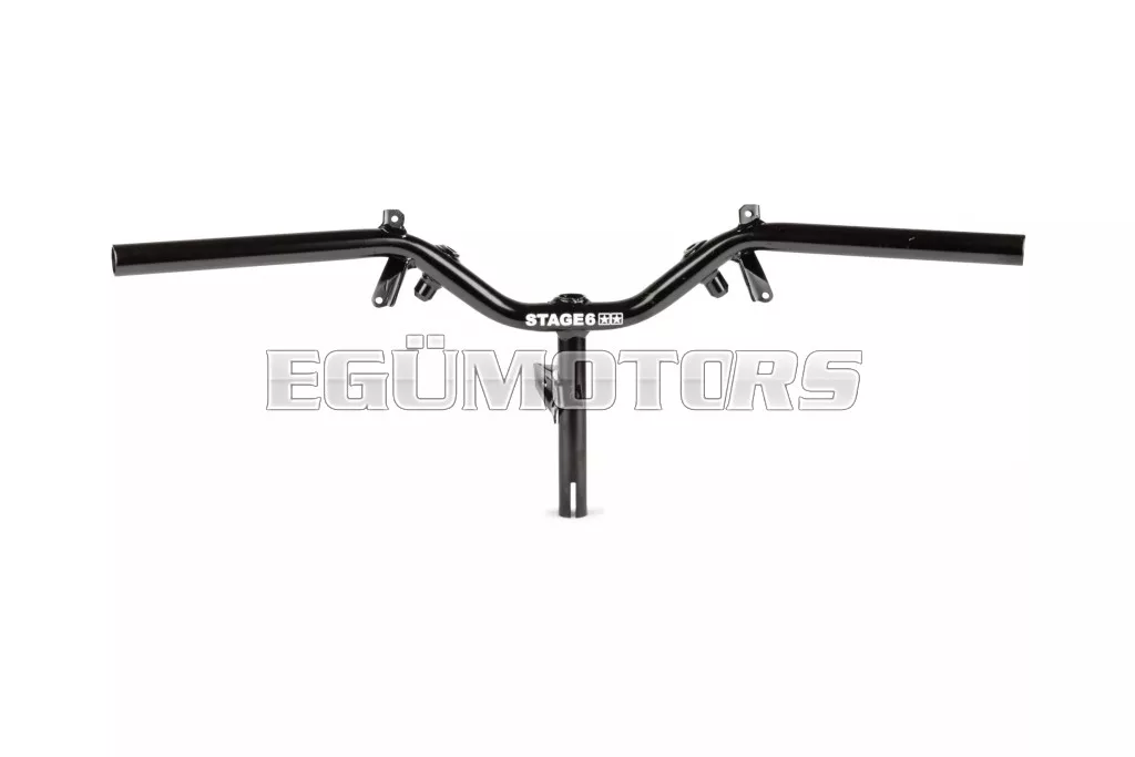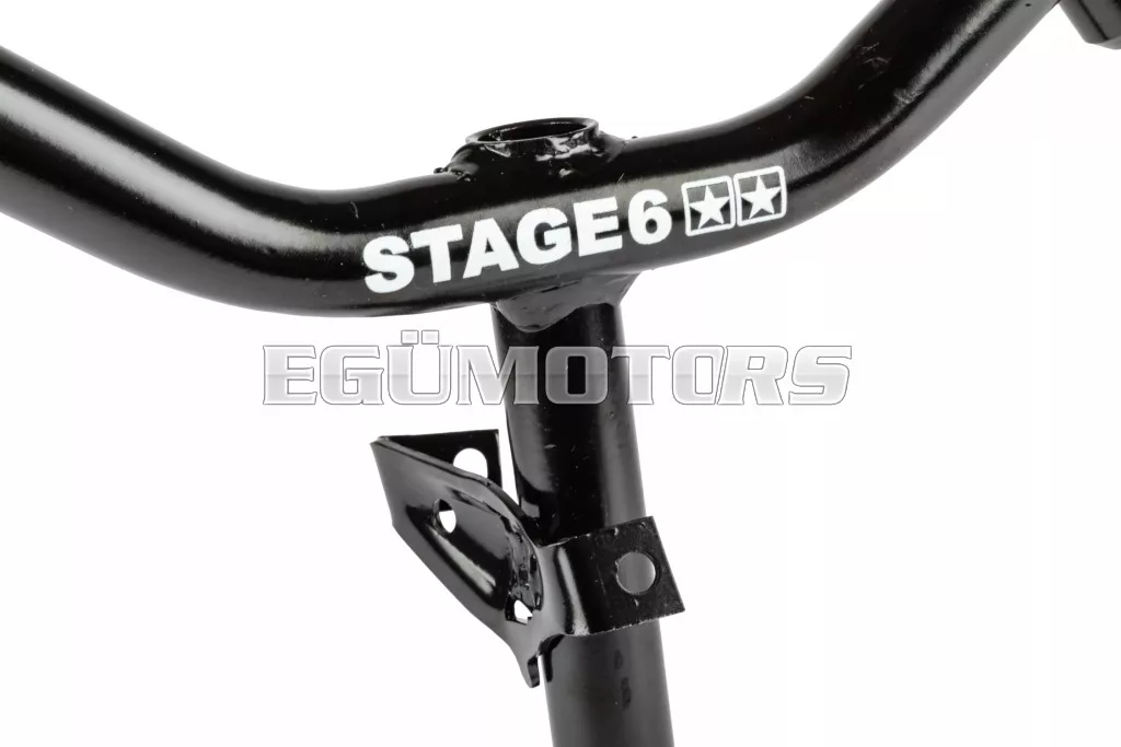A kormány kiváló minőségű fekete bevonattal rendelkezik, valamint fehér STAGE6 logóval, ikercsillagokkal.
