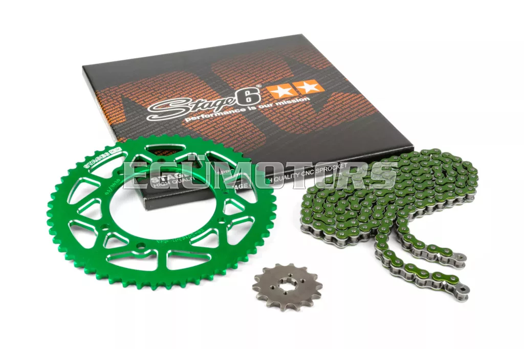 - Hátsó lánckerék 53 fog - 420 Stage6 alumínium CNC zöld Derbi DRD Pro