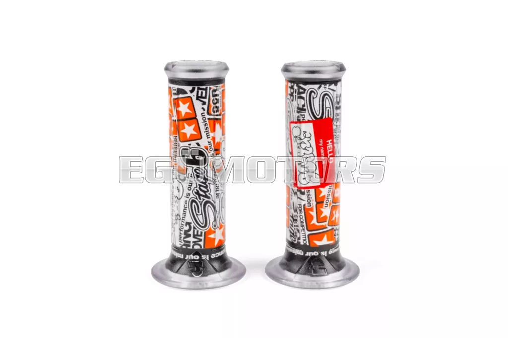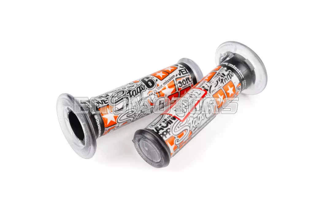 Fontos: A Stage6 Stickerbomb markolatok zárt végű kivitelűek, ami azt jelenti, hogy a markolat végét le kell vágni, ha kormányvéget, kézvédőt vagy fékkarvédőt szeretnél felszerelni. Minden piacon elérhető kormánytípusra felszerelhetők, és a legtöbb gázmarkolattal kompatibilisek.