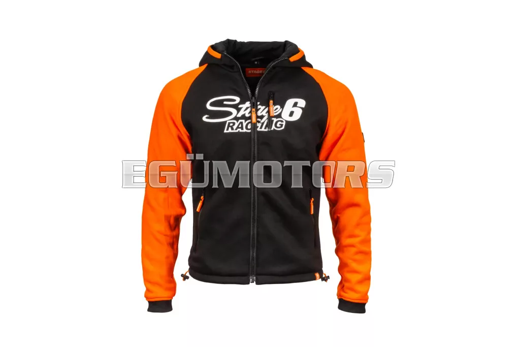 Technikai Stage6 kapucnis pulóver fekete / narancssárga színben - kötelező darab minden robogós és Stage6 rajongó számára!