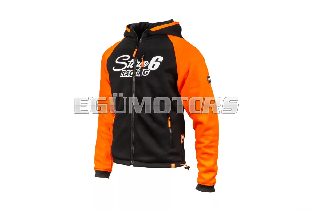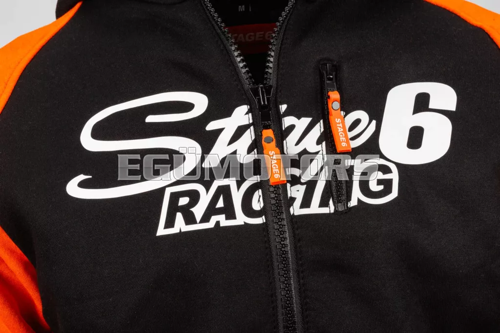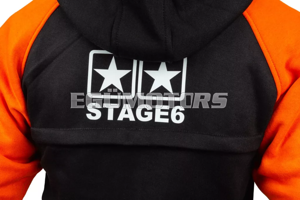 Technikai Stage6 kapucnis pulóver fekete / narancssárga színben - kötelező darab minden robogós és Stage6 rajongó számára!