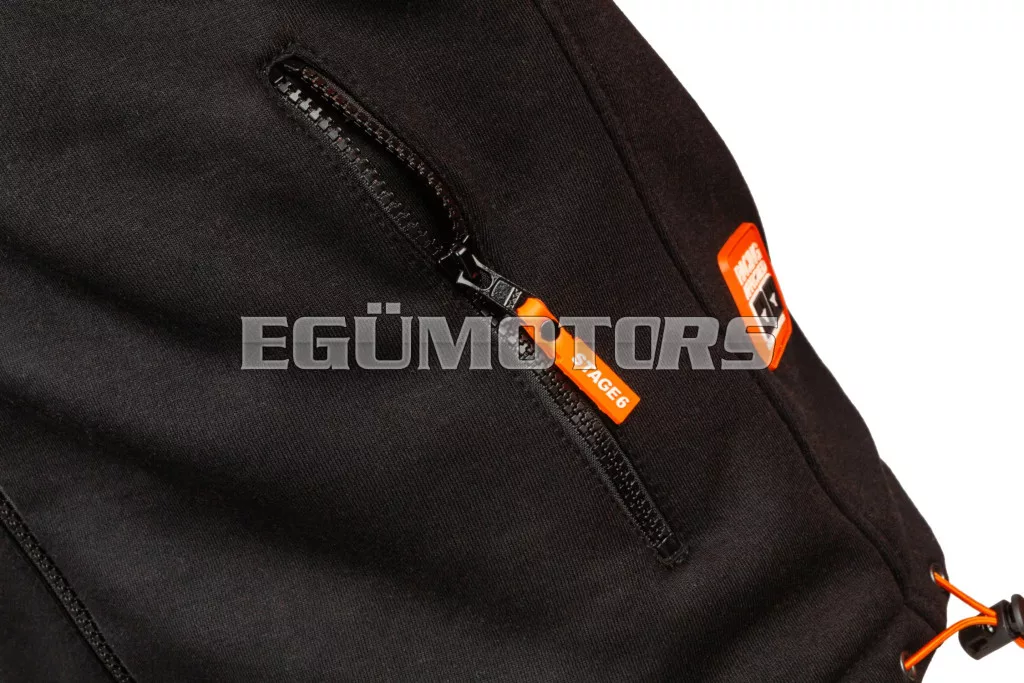 A belső zsebekben elfér az opcionális Stage6 hát-, könyök- és vállvédő szett. A védők ECE-jóváhagyással rendelkeznek a maximális biztonság érdekében. Ezáltal a kapucnis pulóver teljes értékű védőruházattá válik mindennapi használatra és kaszkadőr motorozáshoz.