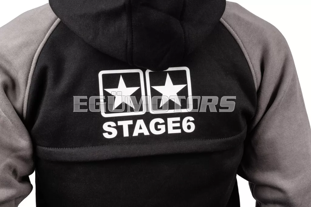 Technikai Stage6 kapucnis pulóver fekete / szürke színben - kötelező darab minden robogós és Stage6 rajongó számára!