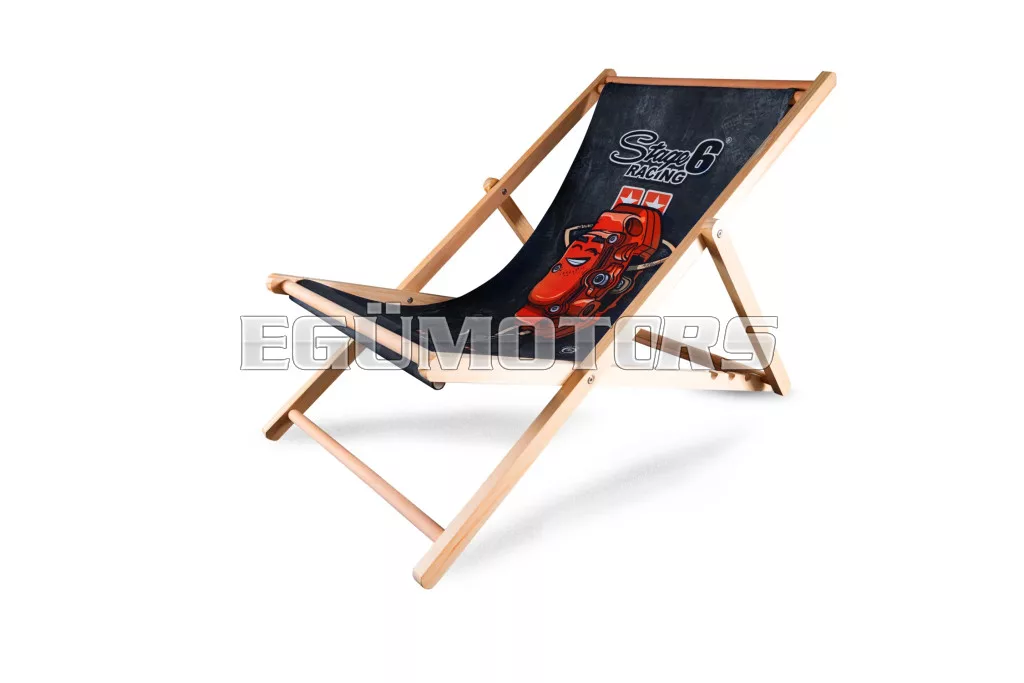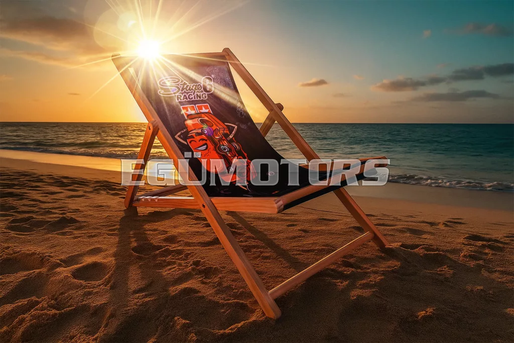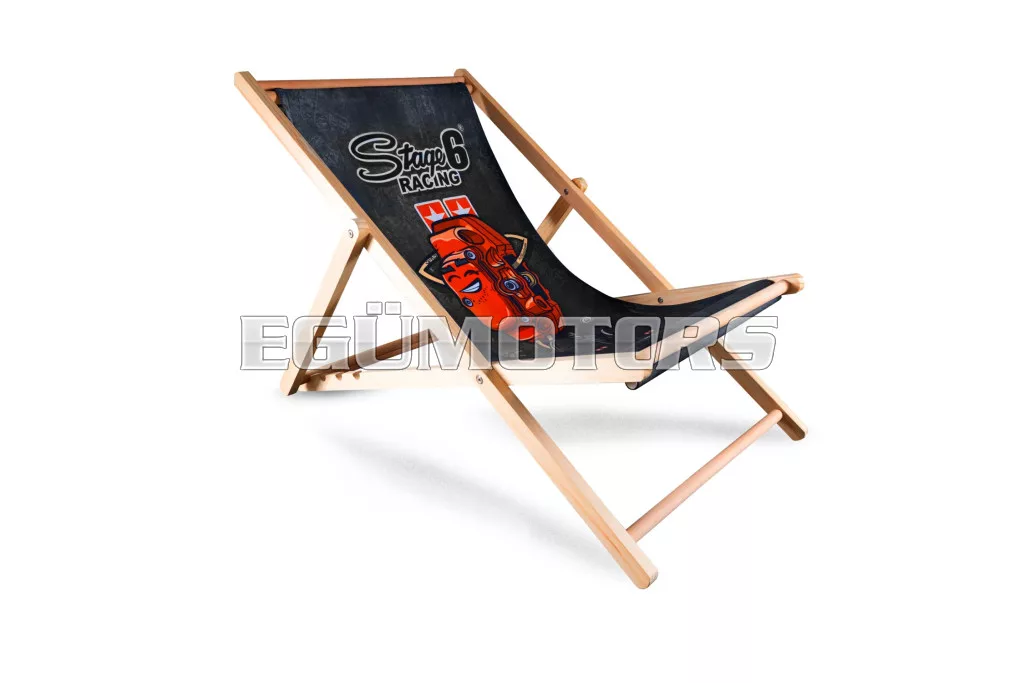 Összecsukható, masszív, klasszikus Stage6 fekete-narancs színekben, tökéletes választás a tengerparton vagy tóparton töltött laza órákhoz, rendezvényeken vagy a kertben. Az ikonikus 4 dugattyús féknyereg figura (Mr. Slowdown) és a feltűnő Stage6 logók egyértelművé teszik: itt egy igazi tuningrajongó pihen.