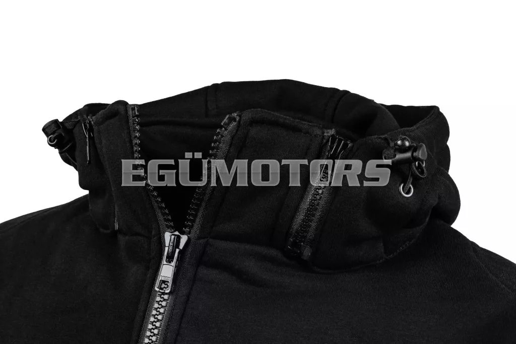 Ez a kapucnis pulóver ötvözi a funkcionalitást és a stílust, így tökéletes választás a közúti és azon kívüli kalandokhoz egyaránt. A pulóver könnyű, a könyöknél és a hátnál enyhén párnázott, levehető kapucnival rendelkezik - tökéletes társ robogózáshoz vagy mopedezéshez.