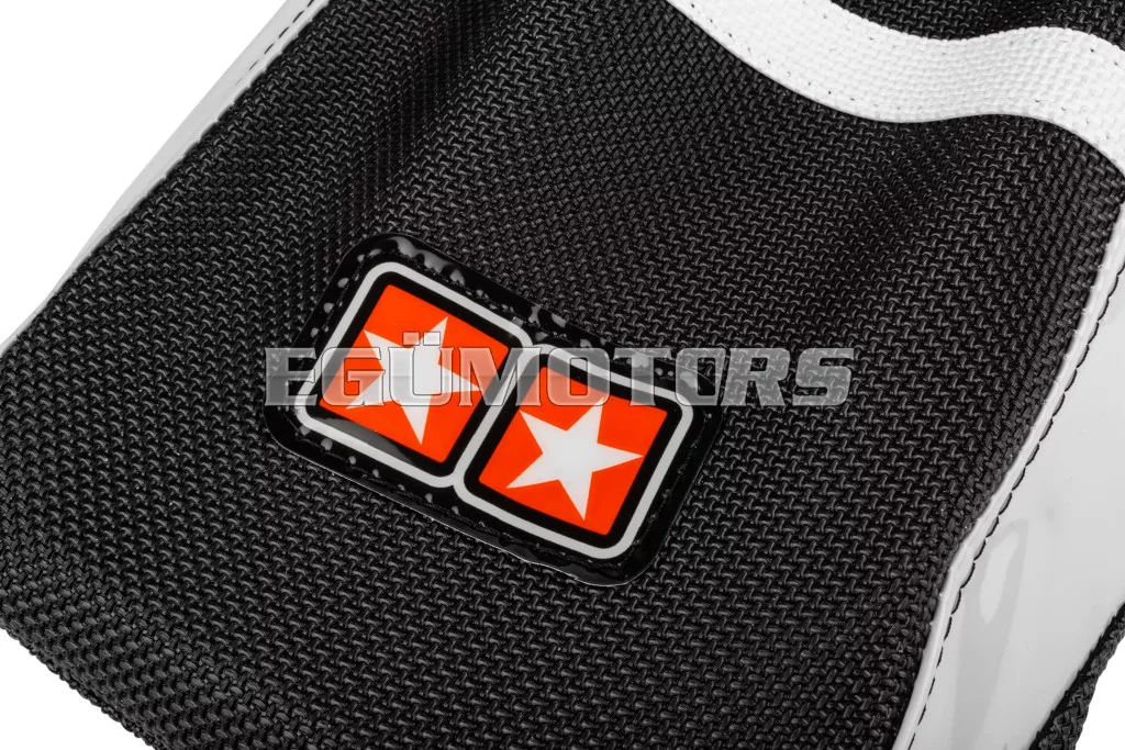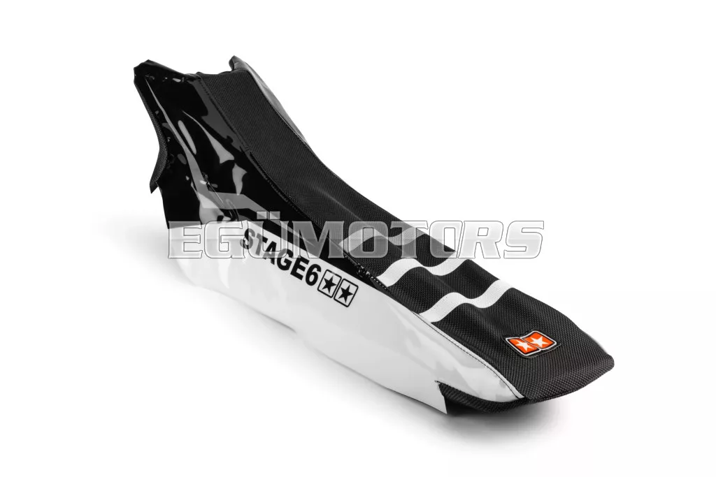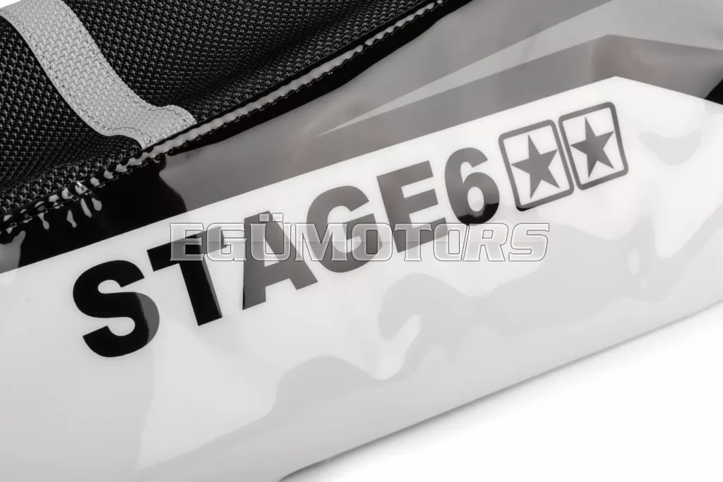 Az üléshuzatnak megfelelő tapadást kell biztosítania, hogy a vezető ne csússzon meg kanyarokban és gyorsítás közben, így a karok terhelése is csökken. Emellett a huzat hozzájárul a motor összképének javításához is. A Stage6 üléshuzatok mindkettőt biztosítják: kiváló tapadást és tartást a csúszásmentes felületnek köszönhetően, valamint 3 színes csíkkal és sportos off-road verseny megjelenést diszkrét Stage6 logókkal.