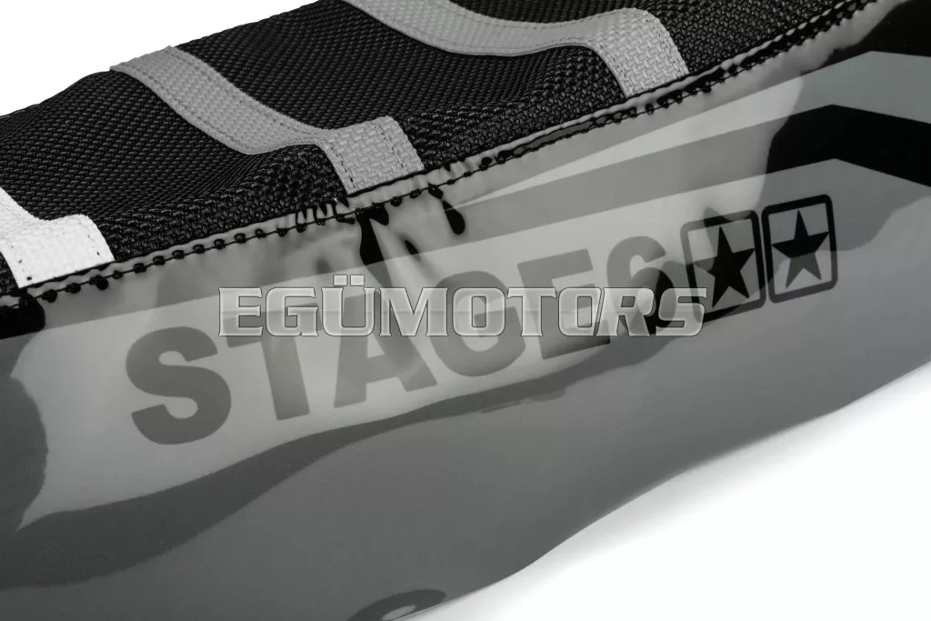 Az üléshuzatnak megfelelő tapadást kell biztosítania, hogy a vezető ne csússzon meg kanyarokban és gyorsítás közben, így a karok terhelése is csökken. Emellett a huzat hozzájárul a motor összképének javításához is. A Stage6 üléshuzatok mindkettőt biztosítják: kiváló tapadást és tartást a csúszásmentes felületnek köszönhetően, valamint 3 színes csíkot és sportos offroad verseny megjelenést vinil oldalpanelekkel, Stage6 logóval, amelyek illeszkednek a Stage6 matricaszettek jellegzetes vonalaihoz.