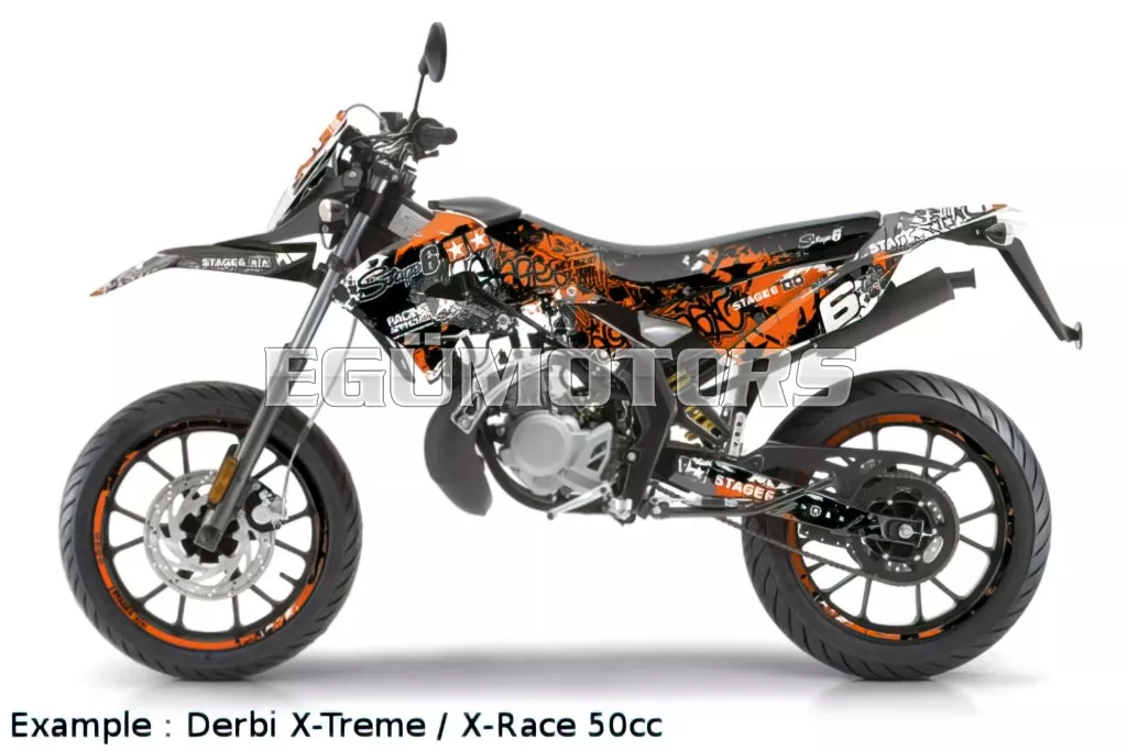 Számos 50cc-es supermoto modellhez kínálunk hozzá illő Stage6 matricaszetteket is.