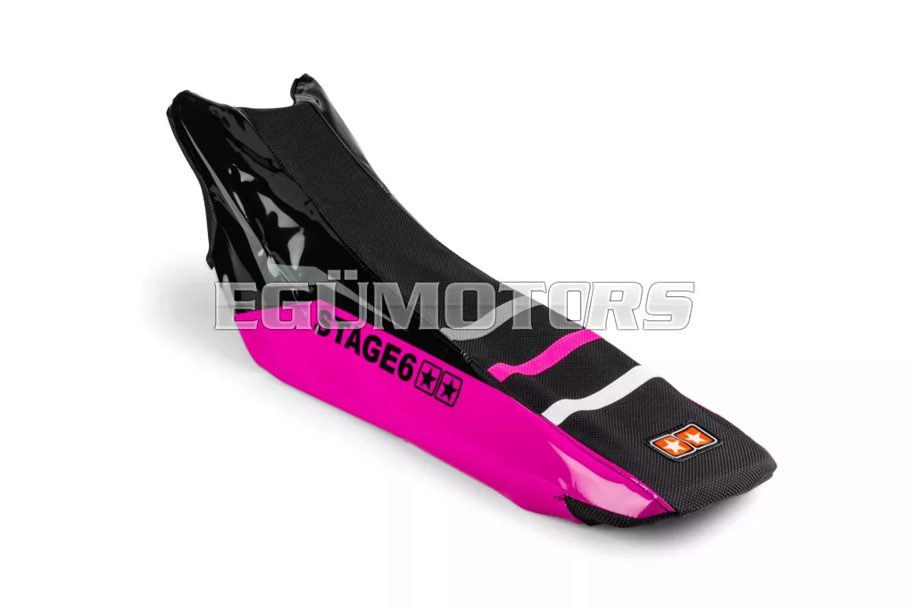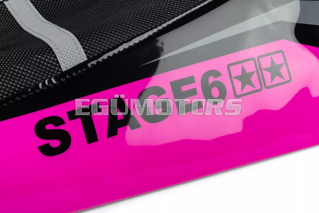Az üléshuzatnak megfelelő tapadást kell biztosítania, hogy a vezető ne csússzon meg kanyarokban és gyorsítás közben, így a karok terhelése is csökken. Emellett a huzat hozzájárul a motor összképének javításához is. A Stage6 üléshuzatok mindkettőt biztosítják: kiváló tapadást és tartást a csúszásmentes felületnek köszönhetően, valamint 3 színes csíkkal és sportos off-road verseny megjelenést diszkrét Stage6 logókkal.
