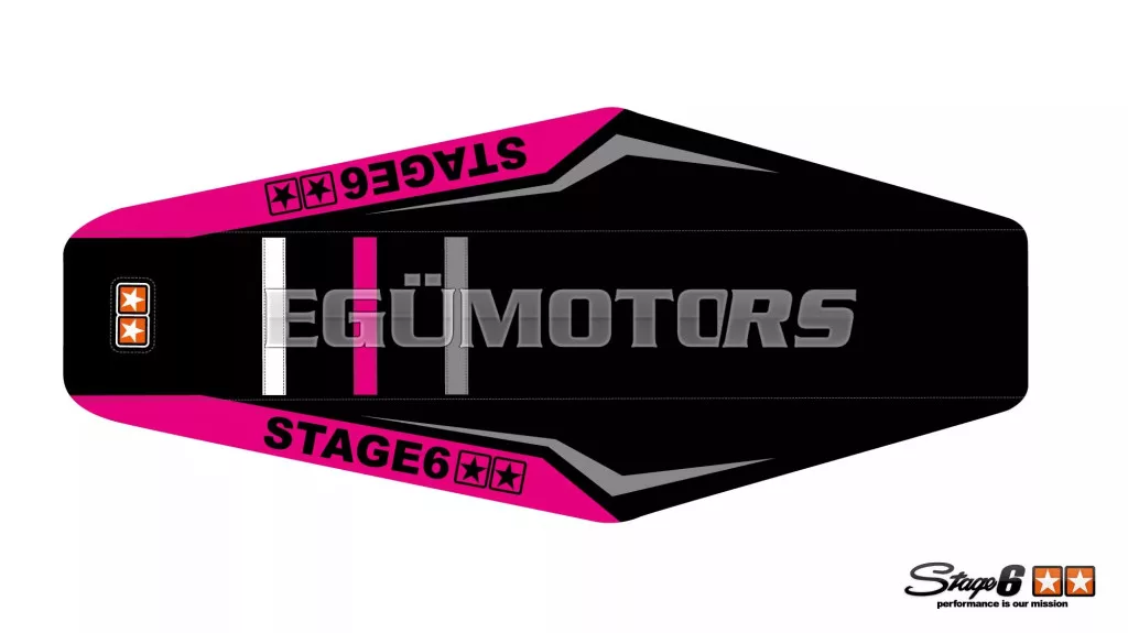Az üléshuzatnak megfelelő tapadást kell biztosítania, hogy a vezető ne csússzon meg kanyarokban és gyorsítás közben, így a karok terhelése is csökken. Emellett a huzat hozzájárul a motor összképének javításához is. A Stage6 üléshuzatok mindkettőt biztosítják: kiváló tapadást és tartást a csúszásmentes felületnek és a 3 színes csíknak köszönhetően, valamint sportos off-road verseny megjelenést a Stage6 logóval ellátott vinil oldalpanelek révén, amelyek illeszkednek a Stage6 matricaszettek jellegzetes vonalaihoz.