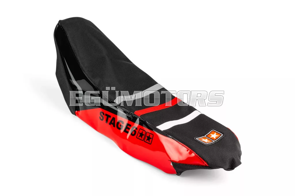 Az üléshuzatnak megfelelő tapadást kell biztosítania, hogy a vezető ne csússzon meg kanyarokban és gyorsítás közben, így a karok terhelése is csökken. Emellett a huzat hozzájárul a motor összképének javításához is. A Stage6 üléshuzatok mindkettőt biztosítják: kiváló tapadást és tartást a csúszásmentes felületnek és a 3 színes csíknak köszönhetően, valamint sportos off-road verseny megjelenést a Stage6 logóval ellátott vinil oldalpanelek révén, amelyek illeszkednek a Stage6 matricaszettek jellegzetes vonalaihoz.