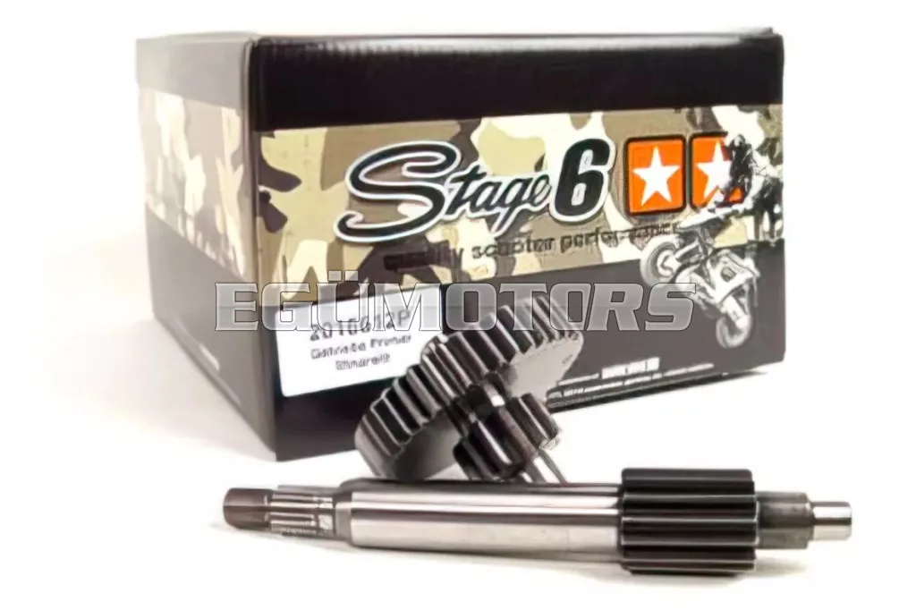 Stage6 végáttétel Primer 15/38 (2.53) Piaggio-hoz (ellencsapággyal a CVT burkolatban), előre préselt tuning áttétel az áttételi arány és a teljesítmény módosításához.