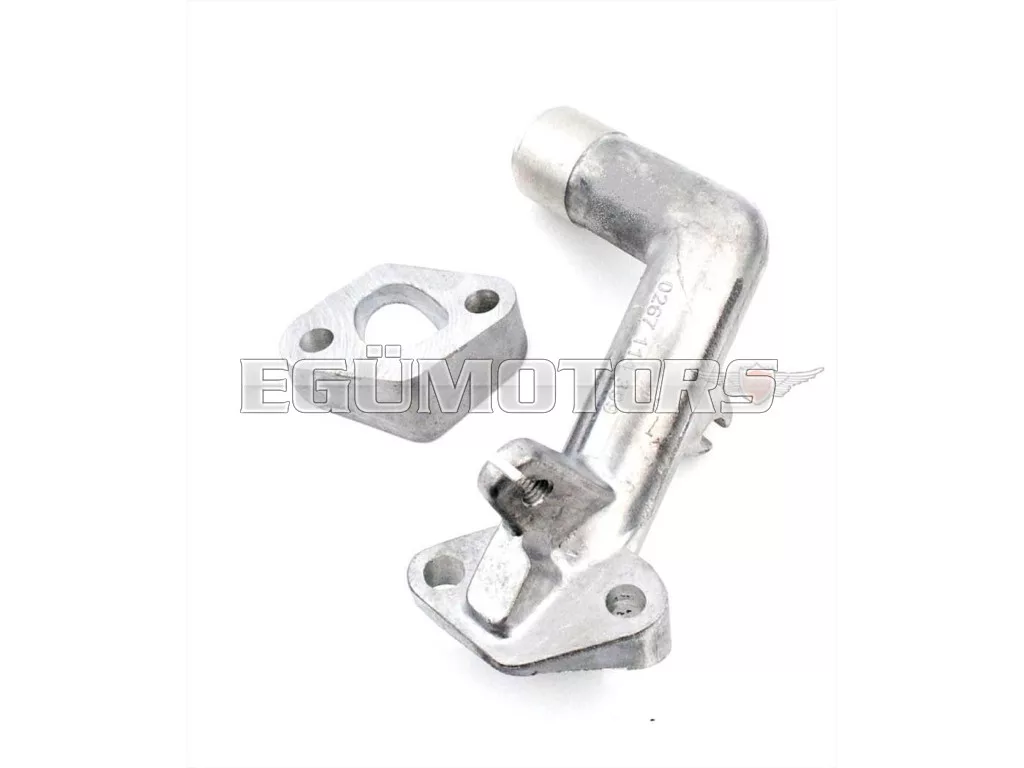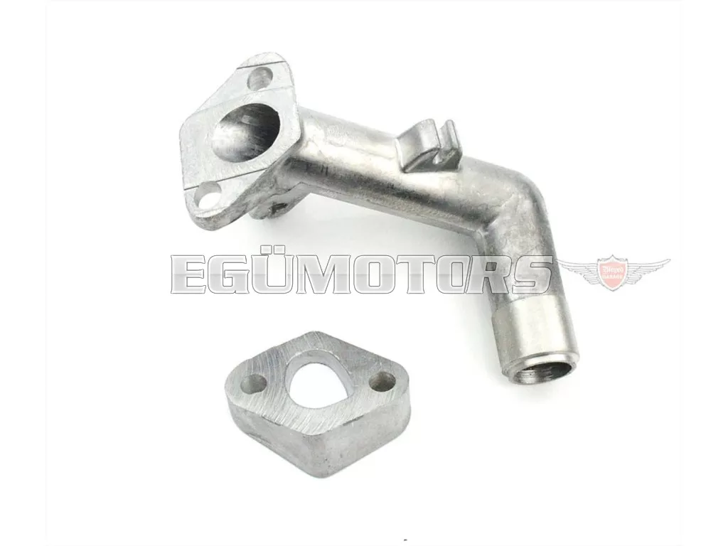 14 mm-es tuning szívócsonk ferde csatlakozással és adapterlemezzel, Sachs 504 / 505 motorhoz, melyeket Hercules Prima, M, DKW és KTM mopedeken és mokickon használnak.