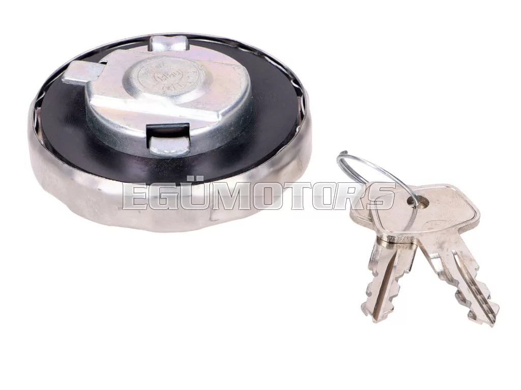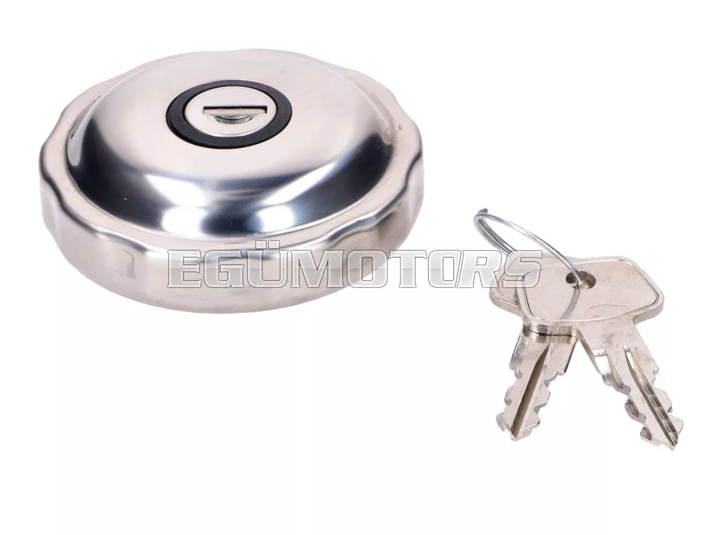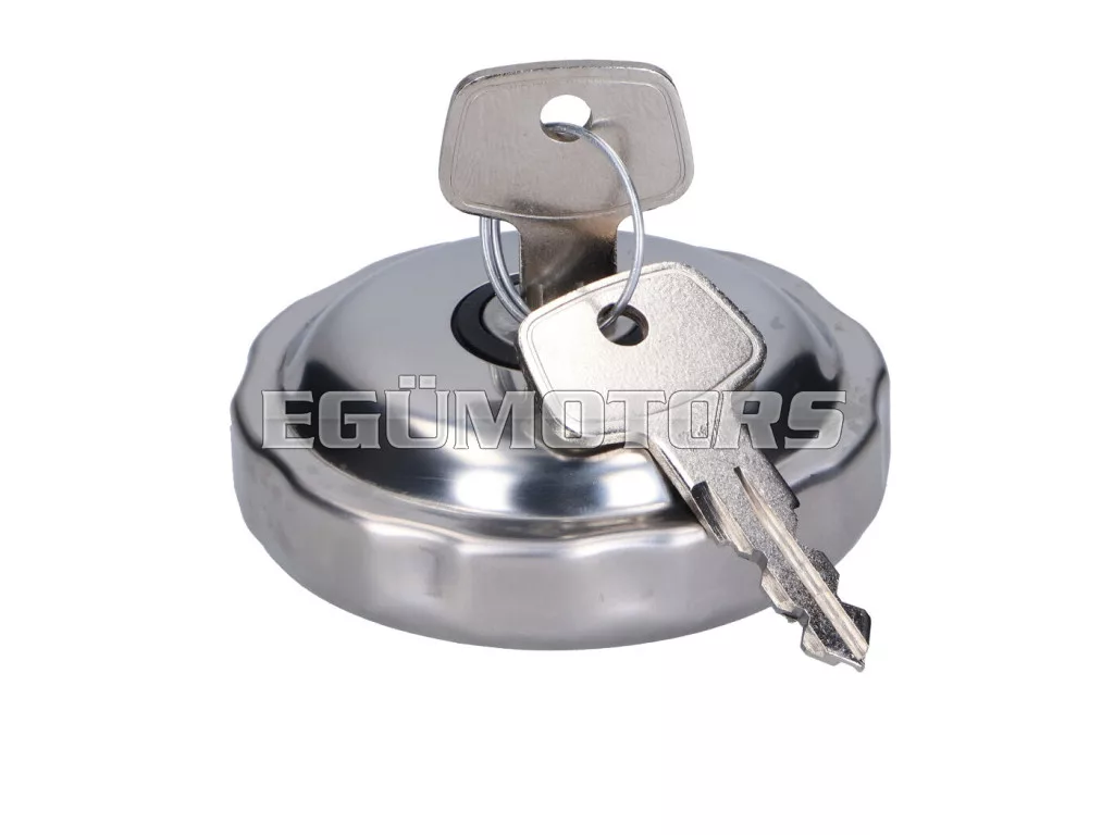 Krómozott tanksapka, szellőzőnyílással és zárható, 2 db kulccsal