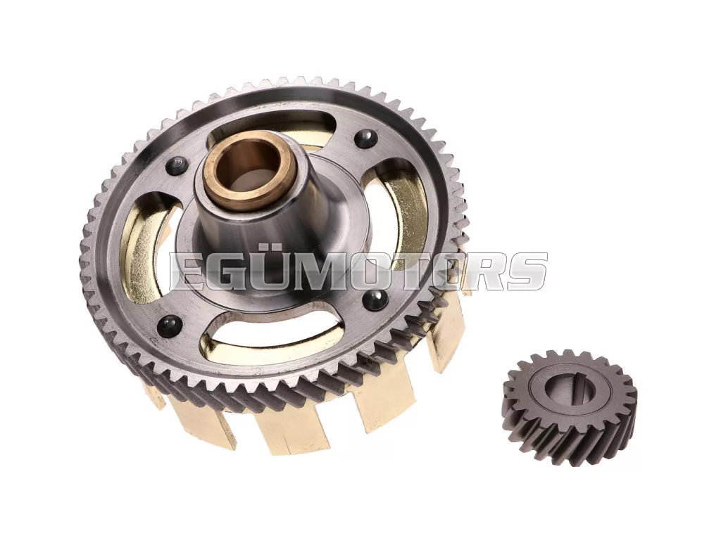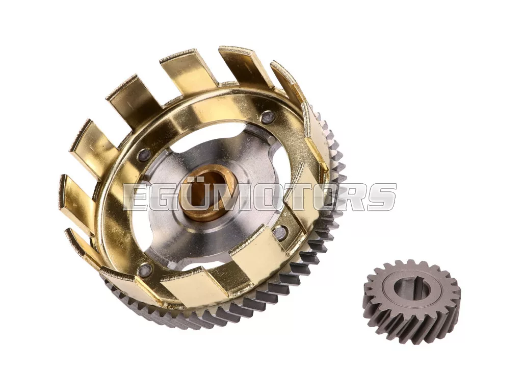 62 fogas kuplungkosár, réz persellyel és 21 fogas főtengely lánckerékkel.