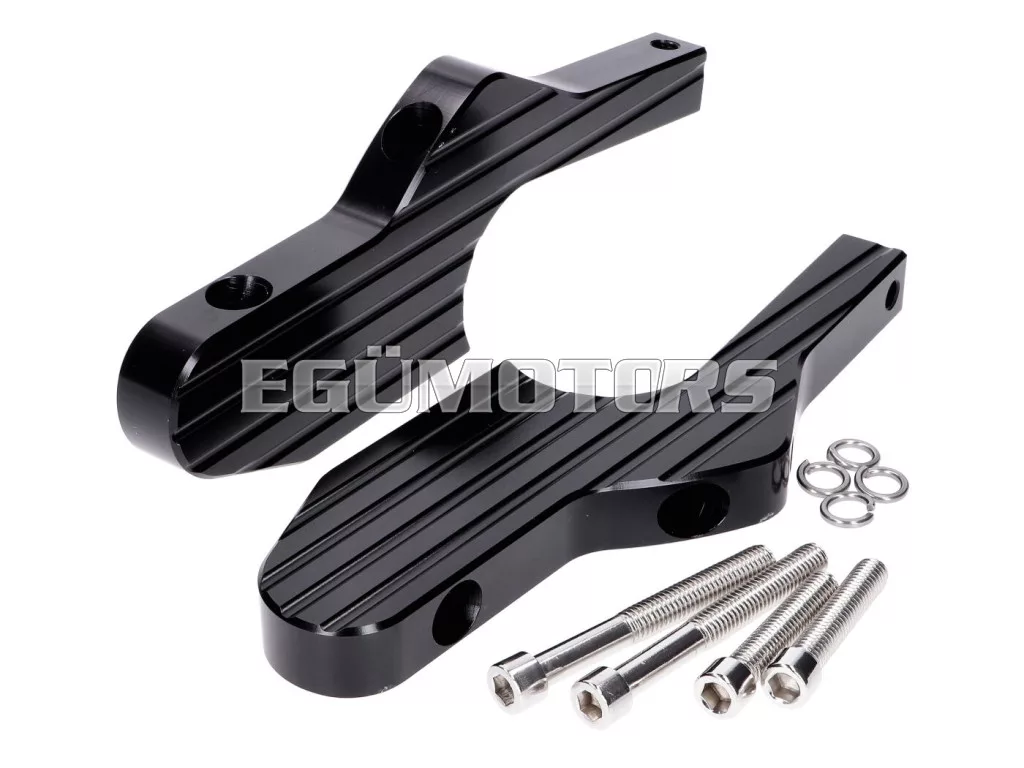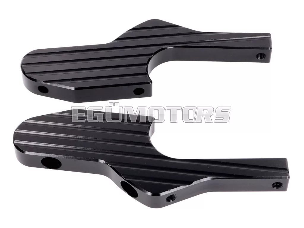CNC marással készült utas lábtartó adapter szett, matt fekete bevonatú alumíniumból.