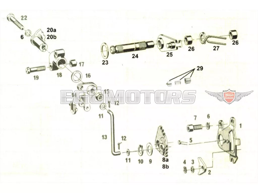 Kilincs Sachs 50/3 és 50/4 motorokhoz, 3- és 4-sebességes lábváltós kivitelhez, típusok: KFS, LFS, LKH, LKS, LFH, EKF.