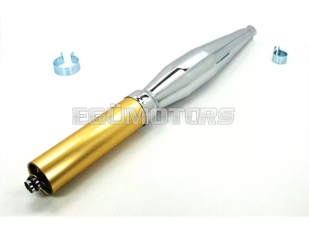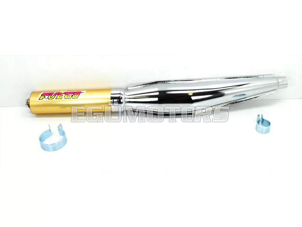 Verseny kipufogó, kiváló minőségben, 28 mm csatlakozással, ideális tuninghoz vagy 50-80cc-es moped versenyhez.