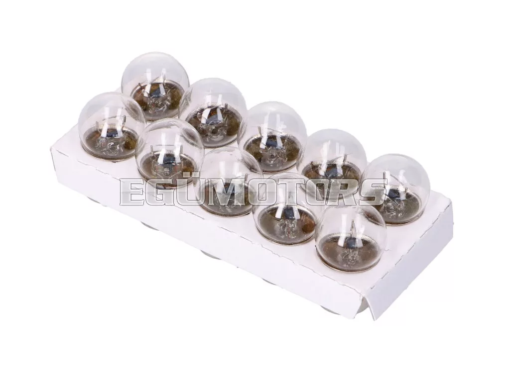 12V, 10W átlátszó irányjelző izzó, kis fejjel és szabványos BA15S foglalattal, narancsszínű búrával rendelkező irányjelzőkhöz.