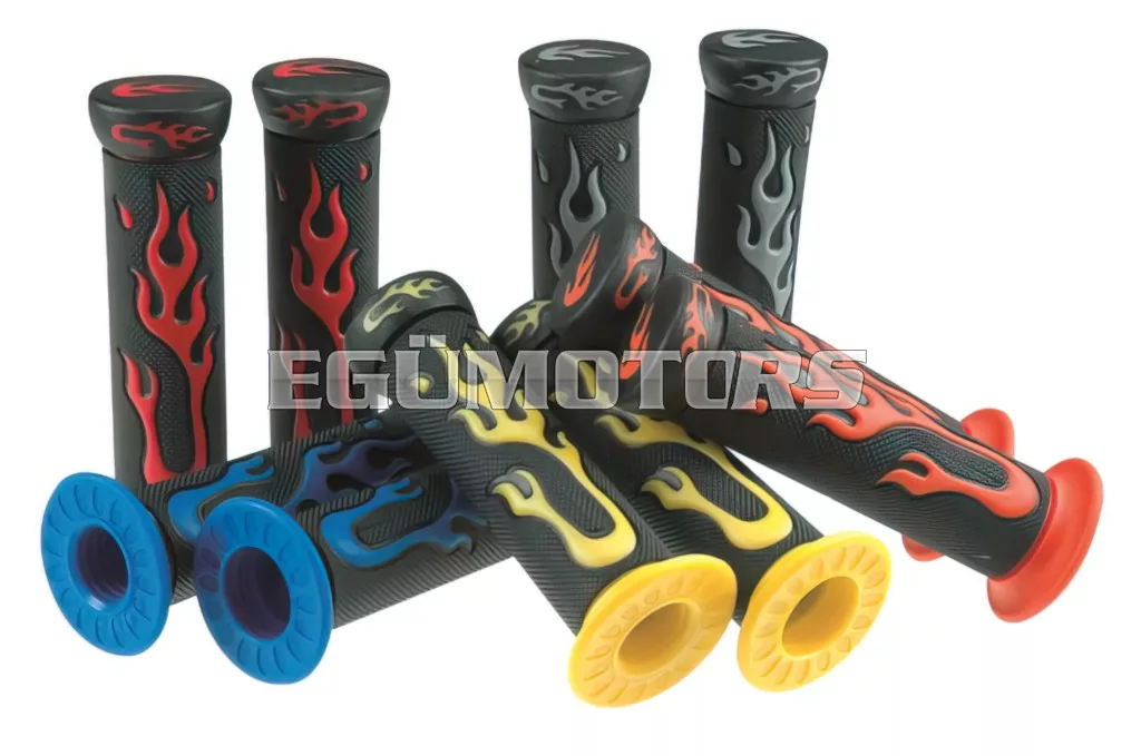 Lángnyelv mintás markolatok, többféle színben. Jó fogású, puha anyagból készült, mindkét végén zárt.