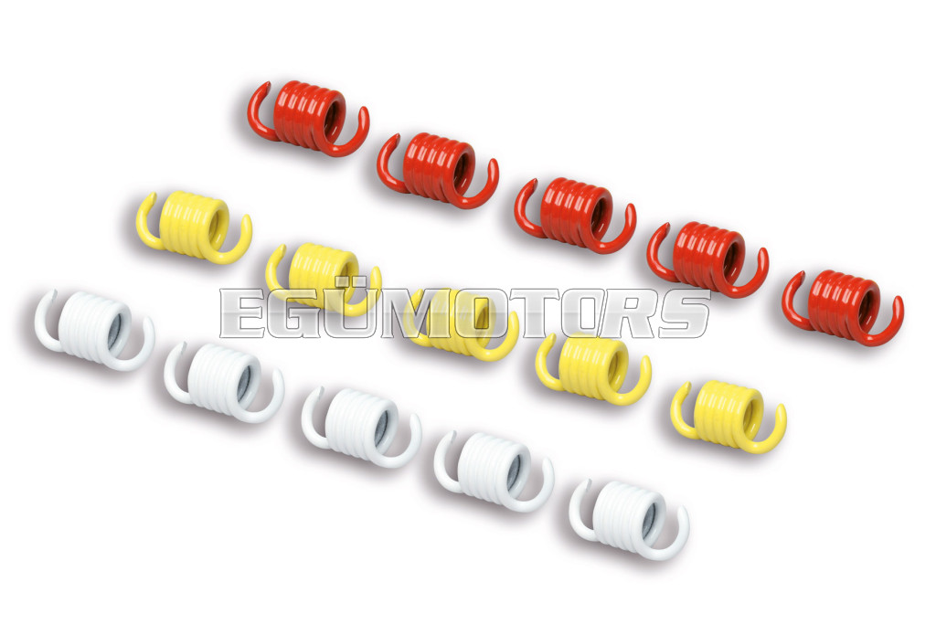 Pre-hardened carbon steel springs, with high yield strength, that are protected by a high heat-resistant paint in various colours. The different colouring shows the stiffness of each spring series.