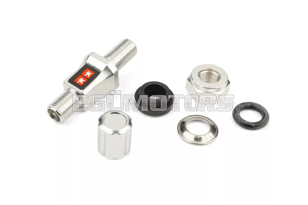 Stage6 CNC Gumiabroncs szelep, CNC megmunkálással készült, eloxált színű Stage6 gumiabroncs szelepek. Köszönhetően a kicsi méretnek, nagyon praktikusak, különösen a kis kerekeknél, ahol korlátozott hely áll rendelkezésre. Például: Piaggio Zip SP.